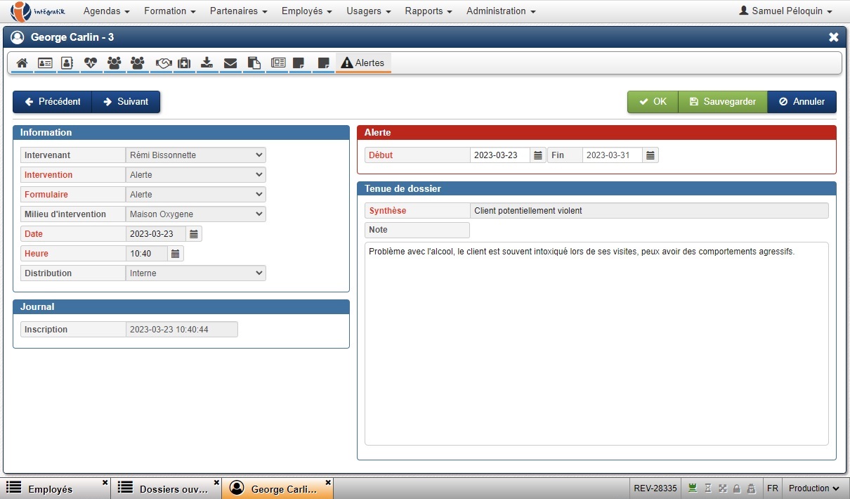 - Tenue de dossier (ouverture de dossier, rédaction de notes, cahier de charge, journal de bord, alerte)